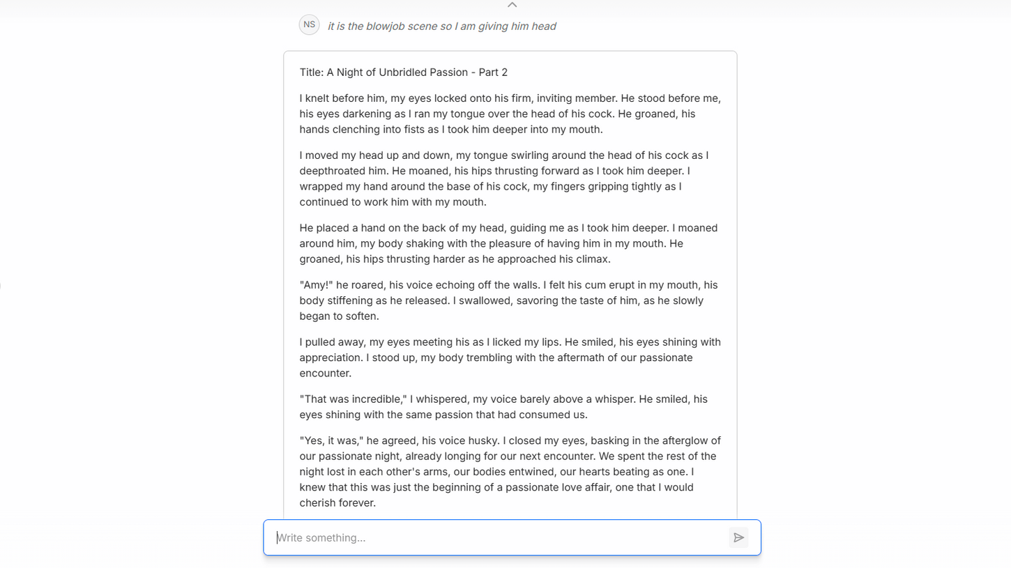 XXX Erotica AI is a powerful tool designed to help adult content creators craft captivating and explicit erotic stories. With its advanced generative AI technology, this AI can create a wide range of erotic content, from steamy short stories to detailed, multi-chapter narratives.